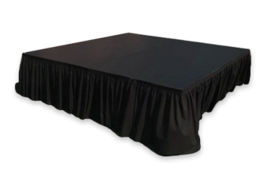 We are Pleased to offer event staging as a part of our rental services as we have a wide variety of dimensions and sizes. Should you need a raised platform for a head table, speeches or a band / DJ we have the right staging for all requirements. Our stages are available with or without black skirting. Stage stairs with railings are also available.